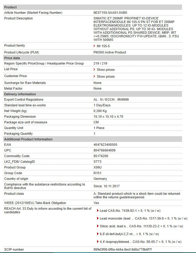 SIMATIC ET 200MP. PROFINET IO-DEVICE INTERFACEMODULE IM 155-5 PN ST FOR ET 200MP ELEKTRONIKMODULES; UP TO 12 IO-MODULES WITHOUT ADDITIONAL PS; UP TO 30 IO- MODULES WITH ADDITIONONAL PS SHARED DEVIC……