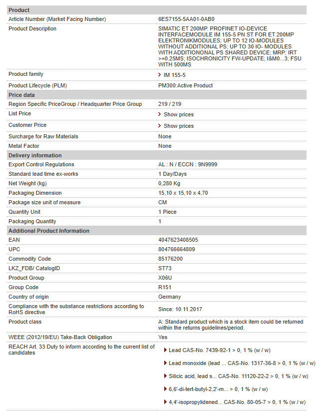 | SIMATIC ET 200MP. PROFINET IO-DEVICE INTERFACEMODULE IM 155-5 PN ST FOR ET 200MP ELEKTRONIKMODULES; UP TO 12 IO-MODULES WITHOUT ADDITIONAL PS; UP TO 30 IO- MODULES WITH ADDITIONONAL PS SHARED DEVICE; MRP; IRT >=0.25MS; ISOCHRONICITY FW-UPDATE; I&M0…3; FSU WITH 500MS |