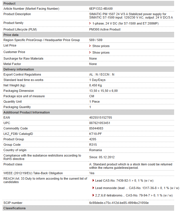 | SIMATIC PM 1507 24 V/3 A Stabilized power supply for SIMATIC S7-1500 input: 120/230 V AC, output: 24 V DC/3 A |
