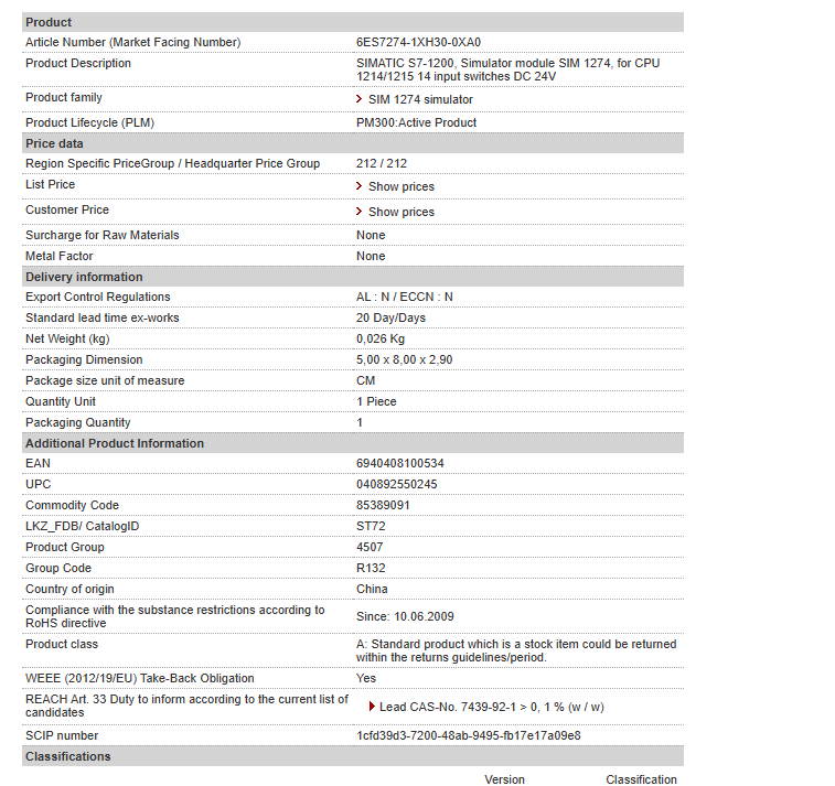 | SIMATIC S7-1200, Simulator module SIM 1274, for CPU 1214/1215 14 input switches DC 24V |