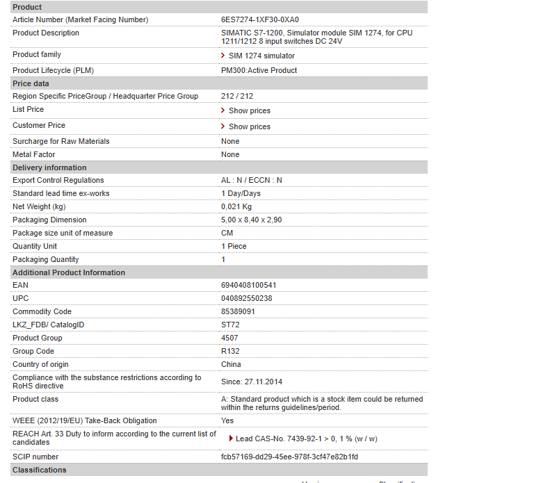 SIMATIC S7-1200, Simulator module SIM 1274, for CPU 1211/1212 8 input switches DC 24V