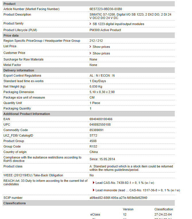 | SIMATIC S7-1200, Digital I/O SB 1223, 2 DI/2 DO, 2 DI 24 V DC/2 DO 24 V DC |