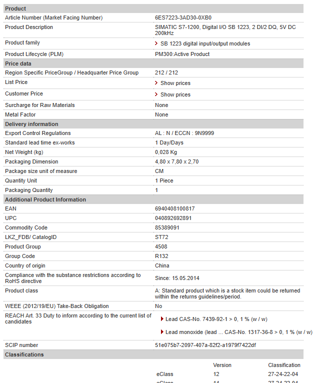 | SIMATIC S7-1200, Digital I/O SB 1223, 2 DI/2 DQ, 5V DC 200kHz |