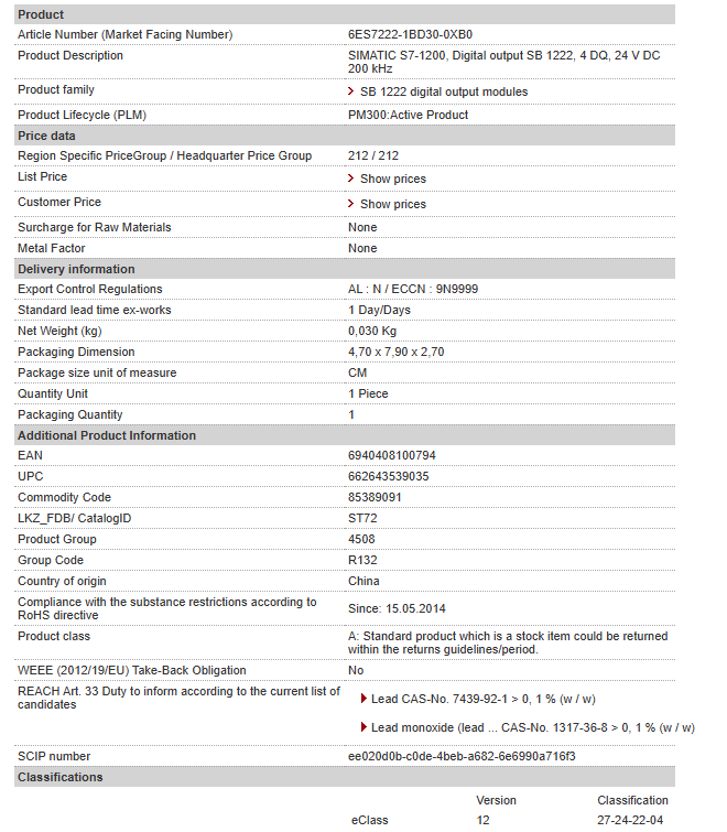 | SIMATIC S7-1200, Digital output SB 1222, 4 DQ, 24 V DC 200 kHz |