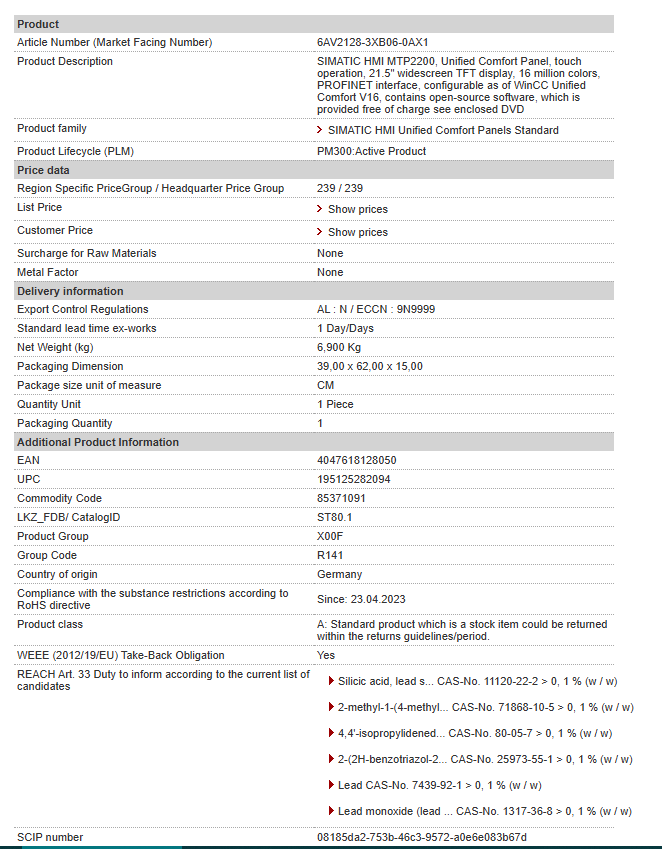 SIMATIC HMI MTP2200, Unified Comfort Panel, touch operation, 21.5″ widescreen TFT display, 16 million colors, PROFINET interface, configurable as of WinCC Unified Comfort V16, contains open-source software, which is provided free of charge see enclosed DVD