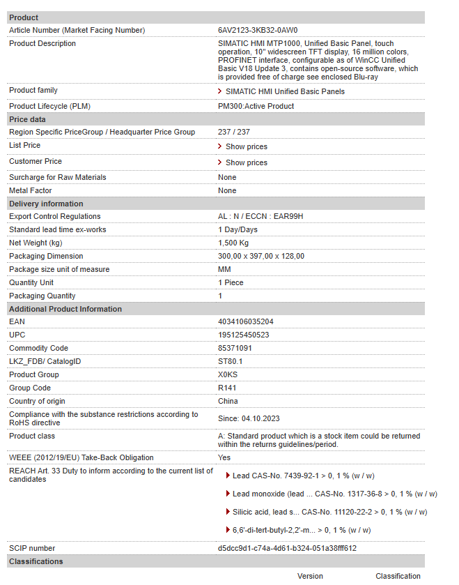 | SIMATIC HMI MTP1000, Unified Basic Panel, touch operation, 10″ widescreen TFT display, 16 million colors, PROFINET interface, configurable as of WinCC Unified Basic V18 Update 3, contains open-source software, which is provided free of charge see enclosed Blu-ray |
