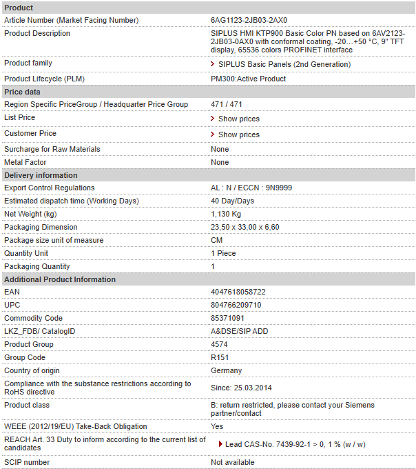 | SIPLUS HMI KTP900 Basic Color PN based on 6AV2123-2JB03-0AX0 with conformal coating, -20…+50 °C, 9″ TFT display, 65536 colors PROFINET interface |