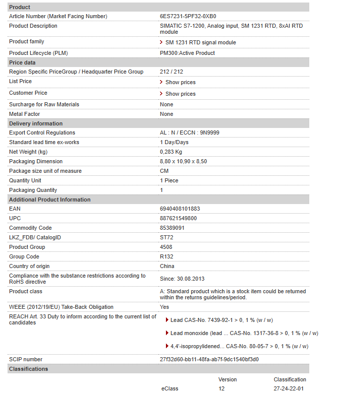 | SIMATIC S7-1200, Analog input, SM 1231 RTD, 8xAI RTD module |